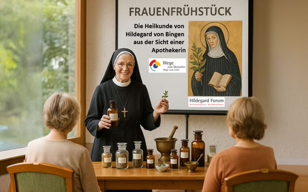 Abtei St. Hildegard Abtei St. Hildegard 1, Rüdesheim, Hessen, GermanyVon den Himmelfreuden, die Herrlichkeit der Seligen, in den himmlischen Wohnstätten Montag, 24. November 2025, Conny Heeser Hildegard-Gesprächskreis im Gästehaus der Abtei St. Hildegard Rüdesheim-Eibingen um 19.00 Uhr. Ort: Abtei St. Hildegard 1, 65385 Rüdesheim Ansprechpartnerin ist Sr. Hiltrud Gutjahr, sr.hiltrud@abtei-st-hildegard.de