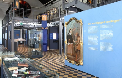 „Der 900. Geburtstag Hildegards von Bingen bot im Jahre 1998 den Anlass, das prachtvolle alte Elektrizitätswerk am Binger Rheinufer in das „Historische Museum am Strom – Hildegard von Bingen“ umzuwandeln. Seither kommen Besucher aus aller Welt hierher, um sich in einer großen Ausstellung umfassend über Leben und Werk der großen Visionärin zu informieren. … die Besucher erwarten vielfältige Begegnungen mit einer der bedeutendsten Frauengestalten der Welt- und Kirchengeschichte. Dabei wird das Leben der Prophetin und Politikerin, Komponistin, Kirchenlehrerin und Naturkundlerin erstmals ganz konsequent auf der Grundlage historischer Forschungsergebnisse erzählt – und zugleich die spannende Vielfalt von unterschiedlichen Blicken auf die stets umstrittene Heilige seit acht Jahrhunderten präsentiert. Wertvolle, zum Teil neu erworbene Objekte, Erstdrucke und Modelle vermitteln ein authentisches Bild der Äbtissin vom Binger Kloster Rupertsberg. Multimedia-Installationen, eine aufwändige grafische Gestaltung und mehrere Mitmach-Objekte für Groß und Klein sorgen dafür, dass die lehrreiche Zeitreise ins Mittelalter auch zum Erlebnis für die ganze Familie wird.“